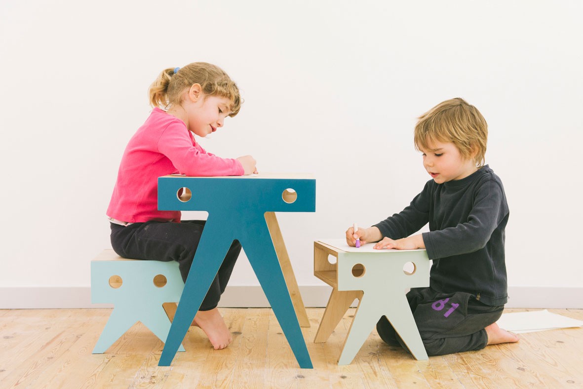 THE WALRUS FAMILY is the family of walruses by NIMIO: two stools and a table for children combining kids imagination with a solid, happy and abstract shape. Children will be immersed in a fabulous marine world inhabited by this curious semi-aquatic mammal.