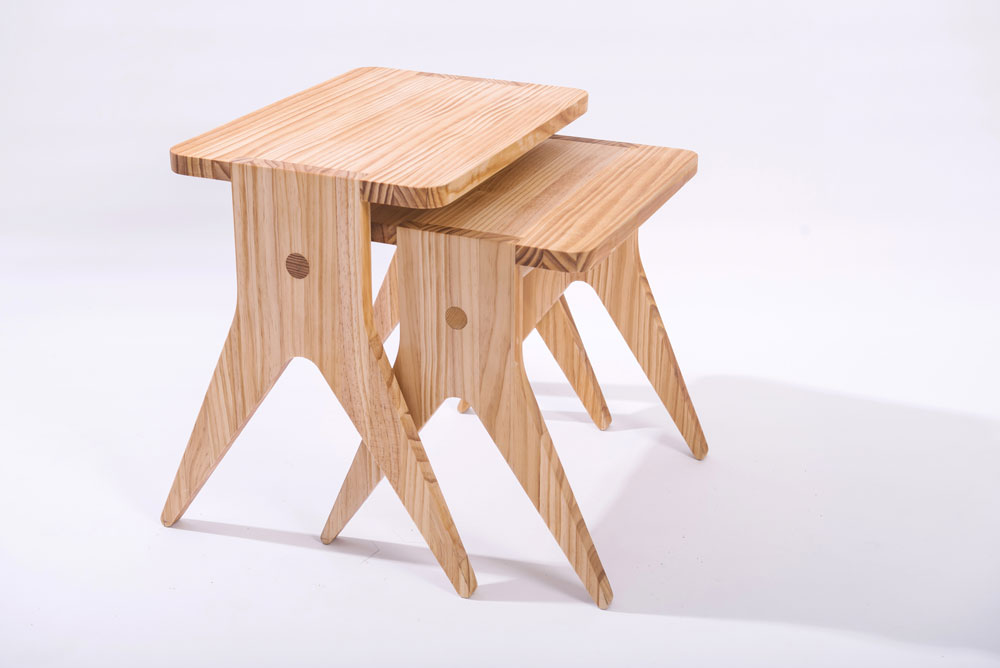 MAIA está pensado como mesa, taburete, o mueble de compañía. Grande y pequeña te observan, te cuidan, y se cobijan una bajo la otra esperando a que les ofrezcas una tarea.